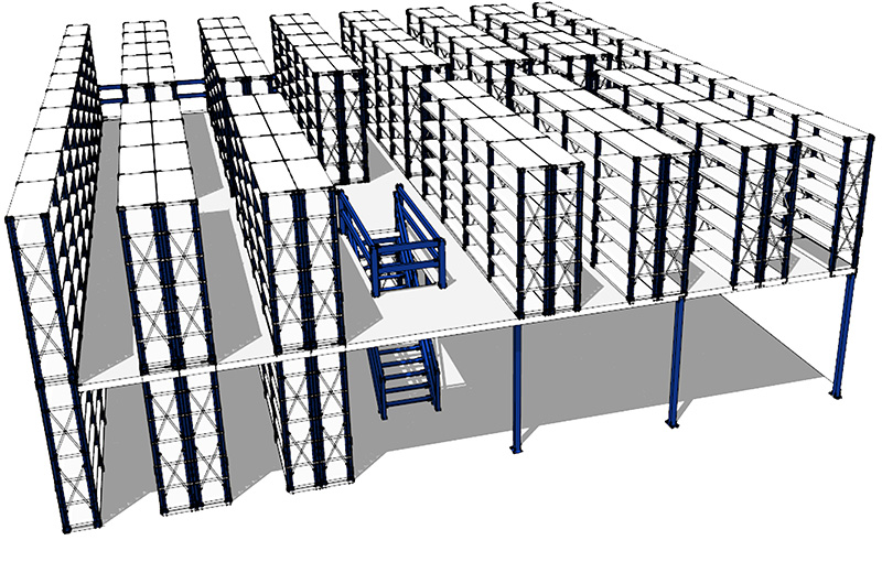 เป็นชั้นวางของ หรือชั้นวางสินค้า ที่ออกแบบเป็นระบบ ตอบโจทย์ด้านระบบจัดเก็บอย่างดี่เยี่ยม เหมาะสำหรับคลังสินค้าที่มีพื้นที่ด้านบนสูงขึ้นไป และต้องการเก็บสินค้าที่มีขนาดเล็ก โดยไม่ต้องใช้รถโฟล์คลิฟในการตัก จาก Micro rack ปกติ สามารถขยายต่อเติมได้เป็น 2 - 3 ชั้น จะมีอุปกรณ์อื่นเข้ามาช่วยเสริม คือ แผ่นปูทางเดินระหว่างชั้น บันได และราวกันตก เพื่อเพิ่มพิ้นที่ใช้สอยในการจัดเก็บแนวสูงให้มากขึ้น 2 - 3 เท่า สะดวกในการใช้งานสามารถจัดหมวดหมู่ได้อย่างเป็นระเบียบ ตรวจนับของได้ง่าย