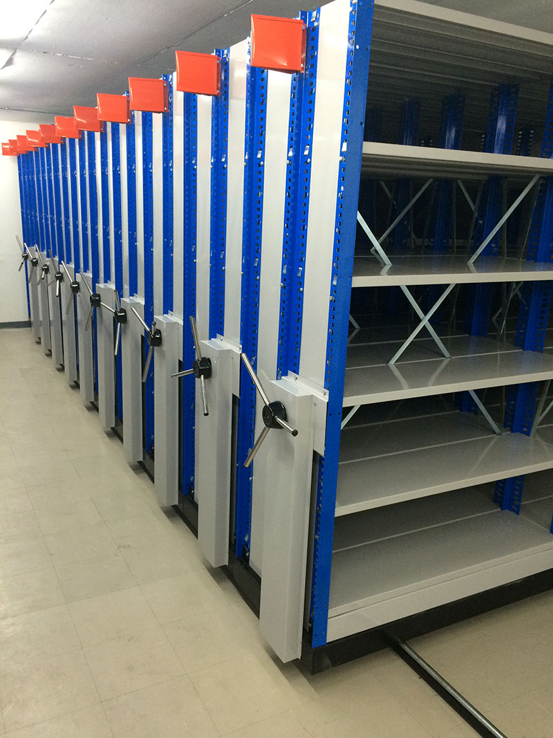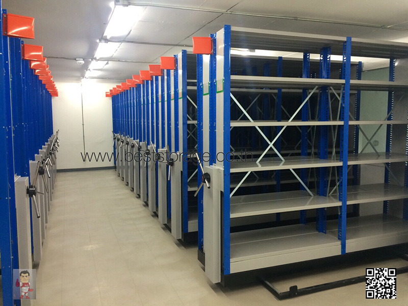 เป็นชั้นวางของ หรือชั้นวางสินค้า ที่สามารถเลื่อนซ้อนกันได้ ด้วยระบบราง วิธีการนี้ทำให้ไม่สูญเสียเนื้อที่ทางเดินระหว่างชั้น เพิ่มเนื้อที่ใช้สอยได้มากกว่า 50% อายุการใช้งานนาน บำรุงรักษาง่าย เหมาะกับการติดตั้งในพื้นที่แคบ ๆ แต่ต้องการจัดเก็บในปริมาณมาก ระบบในการขับเคลื่อน มีทั้งแบบมือผลัก และพวงมาลัยหมุน